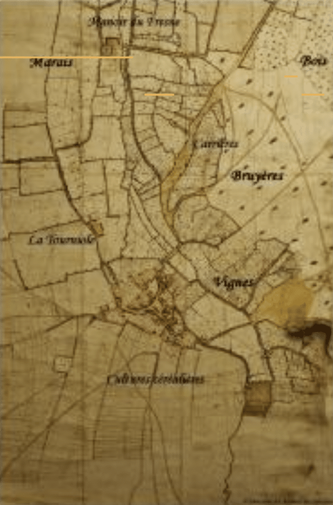 Très dégradée lors de la Révolution par les pillages de bois, la forêt fut vendue comme bien national, elle fut parcellée par les « chemins des bruyères » et mise en herbe pour le développement de l’élevage en plein essor au XIXè. Très tôt, les coteaux furent plantés de vignes par les gallo-romains qui introduisirent cette culture d’origine méditerranéenne dans notre région.