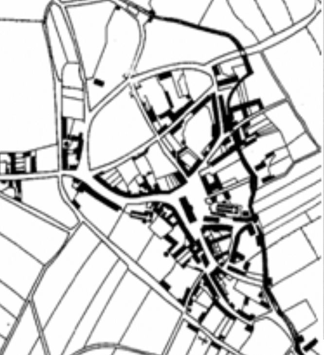 Face à l’ancien gué, le plan du bourg révèle un périmètre de défense dont nous ne connaissons pas l’origine. Vaste (4 ha), il servit à abriter une population nombreuse et ses troupeaux contre les invasions. Il fut probablement un grand domaine à l’époque mérovingienne qui appartint à un certain Aetius. Le quart N.E. appelé « la cour » était encore une propriété noble à avant la Révolution. La porte était décalée par rapport au gué et correspondait à l’entrée du boulevard Deléan, elle donna son nom au moulin qui lui faisait face. La résidence seigneuriale se situait au niveau du Crédit Mutuel.