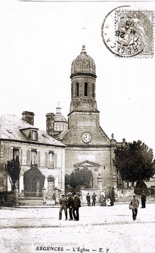 Ce plan de 1748 nous permet de situer les origines géographiques et historiques d’Argences.La forme ovoïde qui est dessinée par les rues au nord du bourg correspond à un périmètre de défense, face au gué, sur l’axe qui allait du Ham au gué Béranger ou de Troarn à Magny la Campagne. La porte principale devait se trouver au sud-est face au moulin qui prit son nom. Actuelle entrée du Boulevard Deléan, elle était normalement décalée par rapport au chemin afin de reconnaître en temps les visiteurs